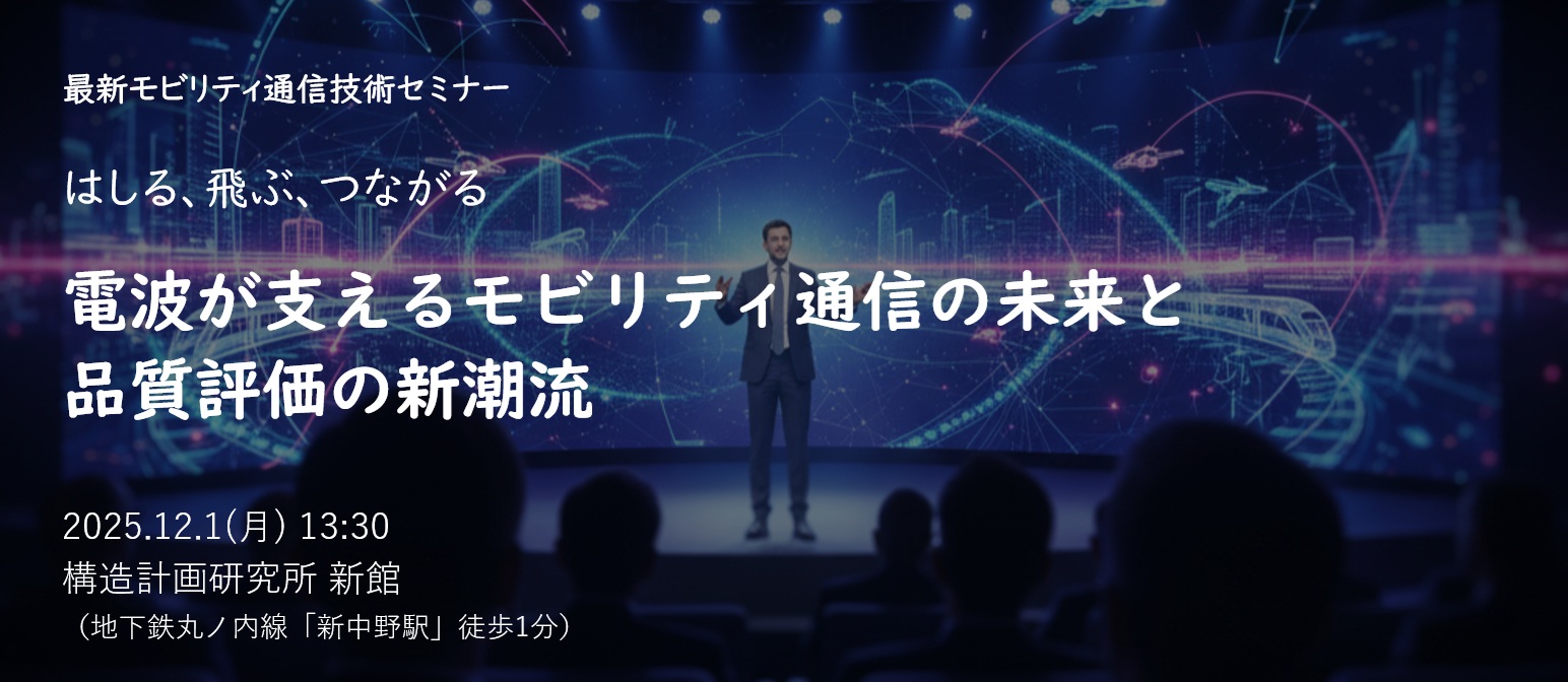 | セミナータイトル | 最新モビリティ通信技術セミナー はしる、飛ぶ、つながる 電波が支えるモビリティ通信の未来と品質評価の新潮流 |